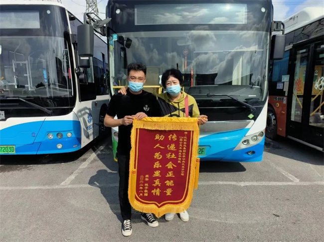 8月30日上午,該女乘客將一面印有“助人為樂顯精神,傳遞社會正能量”的錦旗送到了124車隊,以表感激之情。
