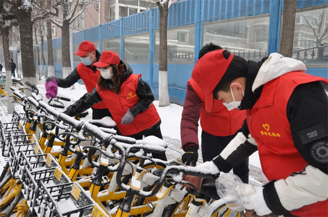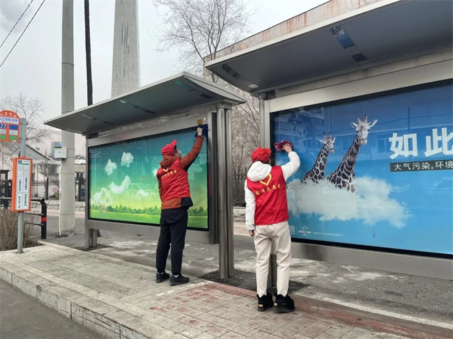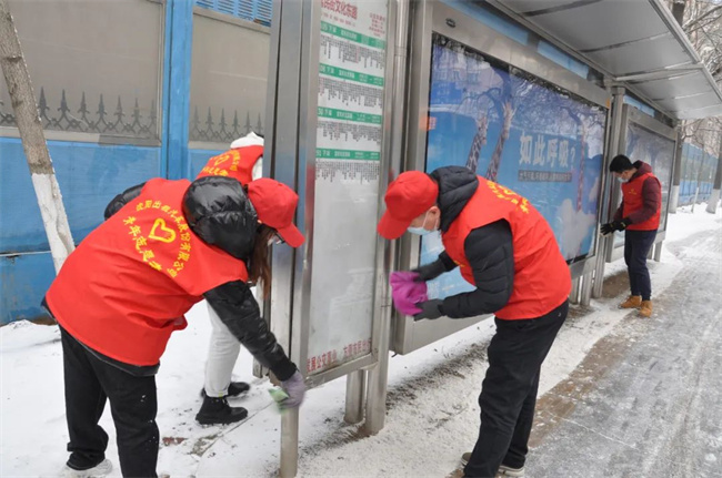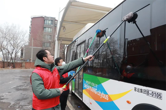 參加活動的青年志愿者們頭戴小紅帽,身披“沈陽市青年志愿者”字樣的紅馬甲,清洗公交車輛,擦拭候車廊站牌,清掃場區站區站務室環境衛生,擺放站區周邊共享單車,使環境衛生煥然一新、整潔有序。同時,志愿者們通過公交車車內廣播、站區廣播、橫幅標語、LED屏等載體,向過往市民、乘客宣傳“暖冬行動”,積極引導廣大乘客文明乘車,爭做文明出行的踐行者,為創建美麗沈陽貢獻力量。