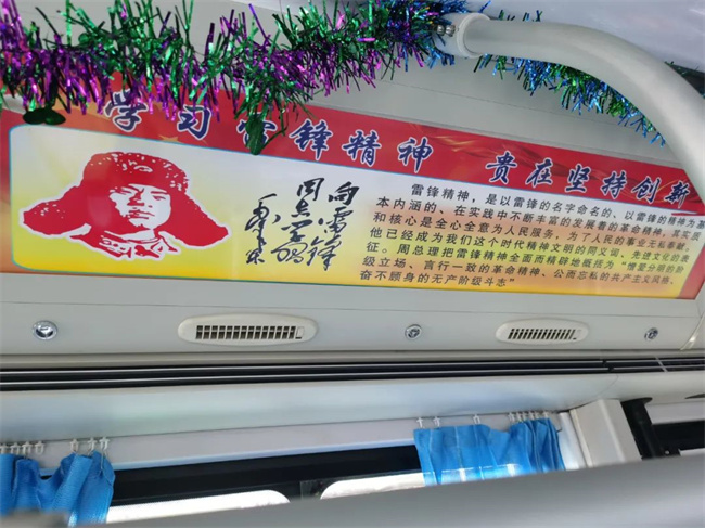 在3月5日當天,209路車隊組織駕駛員、車上安保人員通過車廂展板內容,對雷鋒的生平事跡進行了全方位介紹,讓廣大職工了解雷鋒故事、學習雷鋒行為、傳承雷鋒精神。