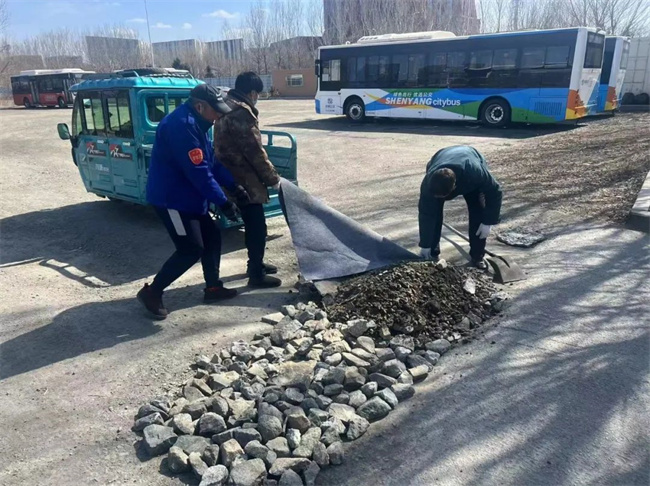 3月15日,154路車隊管理人員及駕駛員利用午間休息時間對場區大門處破損路面進行修繕、回填,并重新鋪設。經過大家的努力,塌陷路面修繕完畢,路面恢復平整,方便了公交車輛和行人通行,收獲好評。