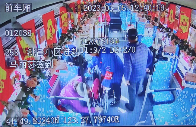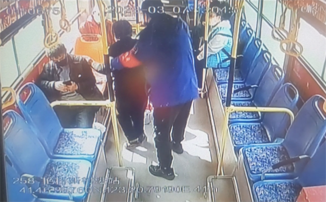 3月7日,賈清巖在艷粉新村始發站主動幫助老人將購物車抬上車,老人認出了賈清巖,還沒等坐穩就面帶笑容走向駕駛室向賈清巖表示誠摯的感謝,賈清巖連忙起身攙扶老人回到座位。