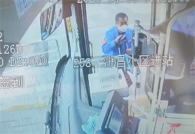 4月5日,駕駛員郎君行駛至大北門車站時看到一位大姨拉著一個手推車上車十分不方便,于是便起身幫助大姨把手推車拿上車,得到大姨的感謝。
