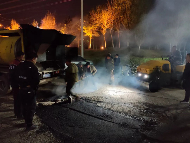 4月12日晚19時,劉嘉巖陪同市政部門工作人員來到實地現場查看道路狀況,確定了道路修補方案。經過兩個多小時的施工,路面破損問題得到了有效解決。