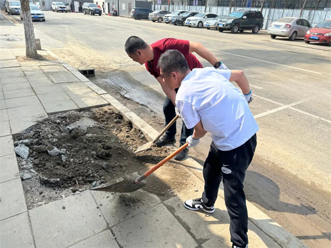 4月14日,128路車隊管理人員集中出動,對站務室門前的坑洼路面進行了修繕。大家你一鍬,我一鏟,有的搬石頭,有的抹水泥,經過一個多小時的作業,受損路面修補平整。