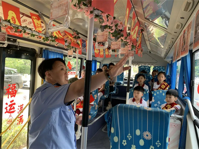 隨后,駕駛員賈清巖為孩子們上了一堂生動的公交安全乘車教育實(shí)踐課,并與孩子們積極互動,讓孩子們更多了解交通安全常識。