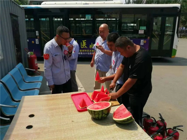 公司各車隊為駕駛員提供了冰鎮礦泉水、綠豆湯、西瓜等防暑降溫食物,保障一線駕駛員的休息質量,確保駕駛員以最佳狀態投入到運營生產工作中。