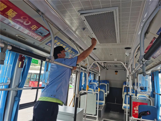 在209路公交場站,管理人員加大職工對車輛日常清潔工作的要求,并對運營車輛逐一檢查,督促駕駛員堅持每趟車運營結束將車廂內外衛生打掃干凈,特別是空調濾網的清潔工作。