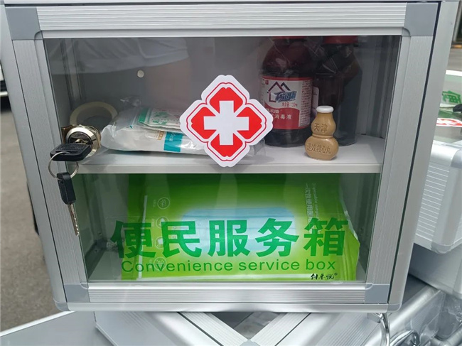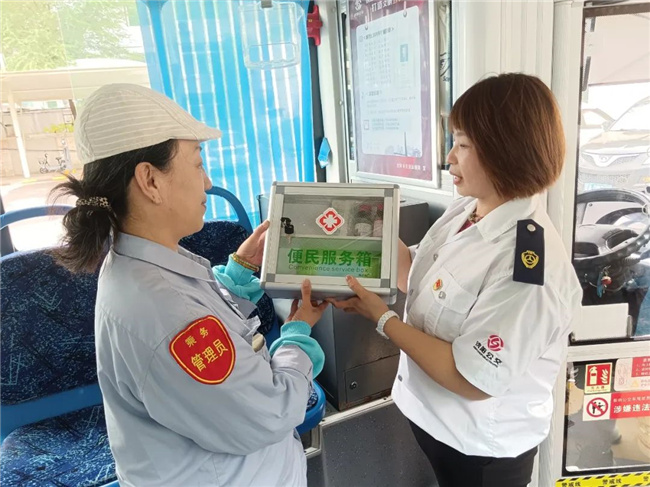 209路車隊的每臺單車上新增配置了印有“紅十字”標志的便民服務箱,里面放置了口罩、速效救心丸、止血帶、碘伏等日常使用的各類物品。廣大乘客在乘坐公交車時,一旦出現緊急情況,可以得到及時有效的幫助和初級救治。