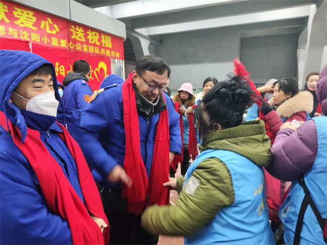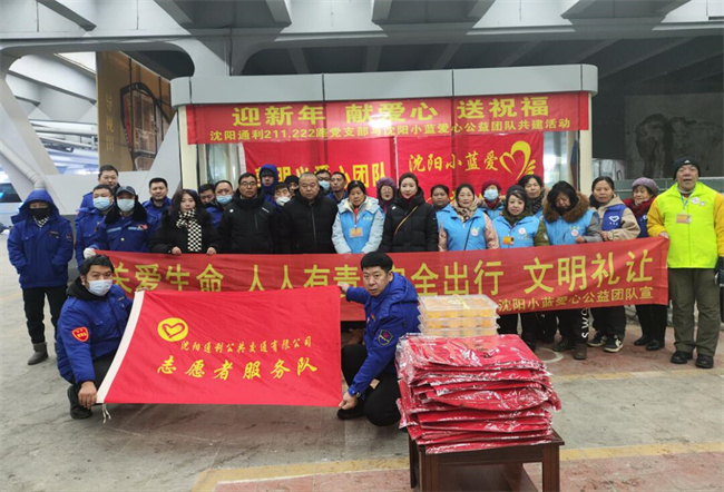 12月22日上午10點(diǎn),沈陽小藍(lán)愛心公益團(tuán)隊走進(jìn)211.222路公交車隊開展“迎新年獻(xiàn)愛心送祝福”慰問活動。