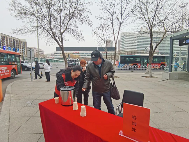 3月5日,場站公司黨員干部來到沈陽北站公交樞紐站設立咨詢處,向市民乘客提供導乘服務,解答乘車出行問題。同時,為場區的公交駕駛員和過往乘客送上了紅糖水,暖胃又暖心。