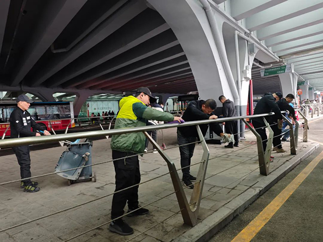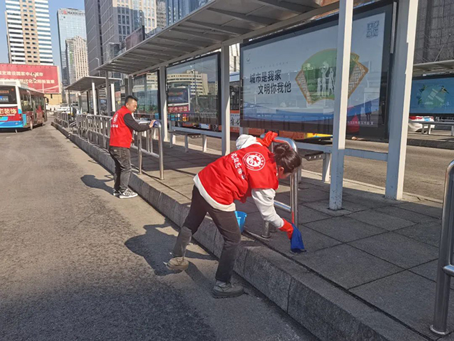 場(chǎng)站公司開展“清潔公交站臺(tái),擦亮文明城市窗口”志愿服務(wù)活動(dòng)。志愿者們帶著抹布、水桶、掃帚等清潔工具,在北站公交樞紐站對(duì)電子站牌、排隊(duì)護(hù)欄、座椅等進(jìn)行清潔整理,改善了乘客的候車環(huán)境。