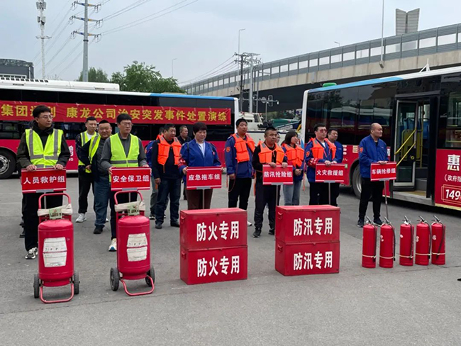 為提高職工的消防安全責任意識,進一步加強安全生產、反恐安保、消防、防汛等工作,4月24日上午,通利康龍公司、華龍公司聯合開展綜合應急演練活動。市公安局公交(軌道)分局相關部門負責人、客運集團相關部門負責人、公司相關部門負責人、各車隊隊長及駕駛員代表參加了本次活動 。