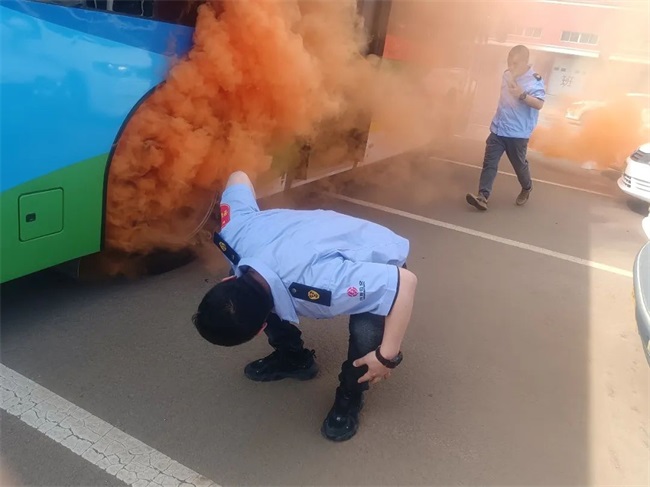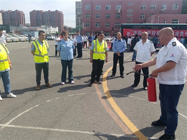 在現場演練環節,黃河公司相關負責人現場講解并模擬在公交車輛突發火災事故中,駕駛員如何采取應急措施,疏散乘客到安全位置;如何正確使用滅火器進行滅火,最大限度保障人民生命財產安全;遇到乘客攜帶不明液體乘車時,駕駛員如何正確安檢示范;車廂內乘客與乘客之間發生沖突時,駕駛員的正確處置方法等。