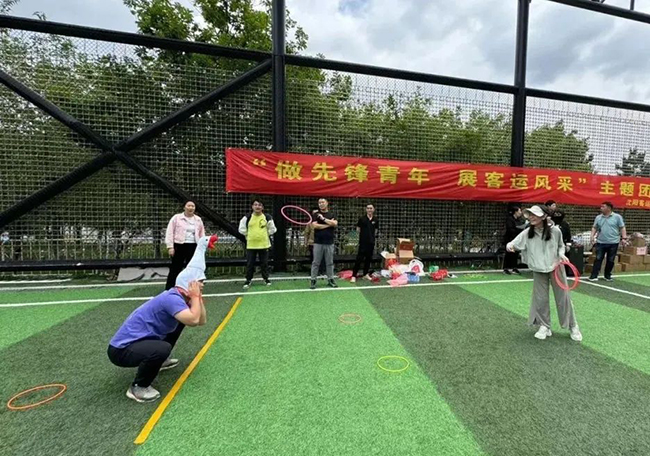 參觀結束后,大家來到莫子山公園炫彩青年運動場,圍坐在活動場地,分享彼此的感受和收獲,隨后在工作人員的引導下開始了緊張而刺激的團隊體育競技游戲。