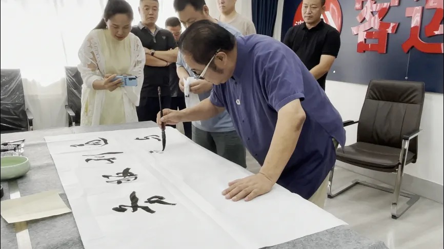 活動中,單丹將自己創作的作品贈送給駕駛員,單銳敏老師則現場揮毫潑墨,用書法表達美好祝福。