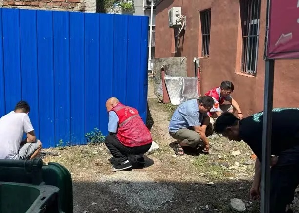 西江街黨支部、209黨支部組織志愿者們,帶著掃帚、鐵鍬、垃圾袋、抹布等勞動工具,分別來到西江街齊云山路30巷和昆山西路167巷,對路邊綠化帶、花壇、停車場的雜草、白色垃圾、飲料瓶、果皮等進行清掃。大家不怕辛苦、不懼日曬,耐心細致的將每一處衛生死角都清掃得干干凈凈。經過將近一小時的勞動,整條小巷的衛生環境得到了極大的改善。