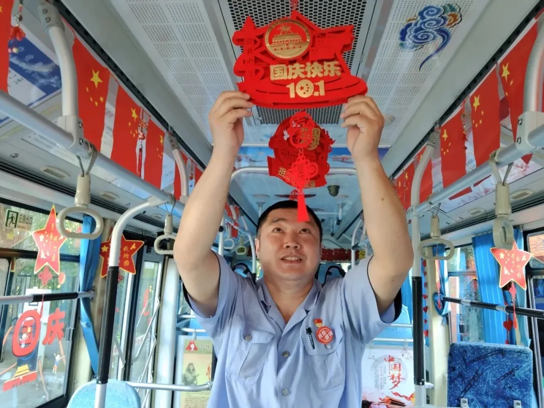 為祖國慶生,客運集團各車隊精心裝扮公交車廂。多條公交線路的車廂內(nèi)飄滿最美“中國紅”,將自己對祖國的美好祝愿注入在這十米車廂之中,以這種方式展示沈陽公交人的愛國情懷。