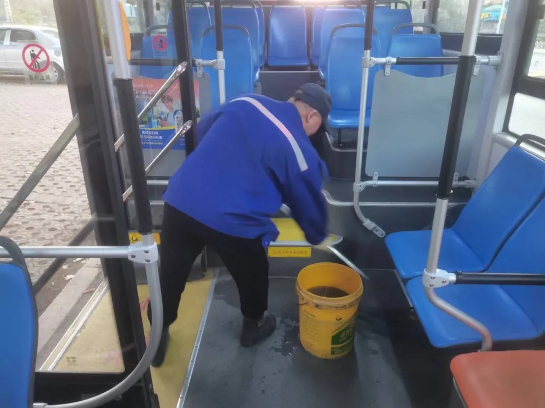 近日,沈蘇公司385、389路車隊駕駛員利用站停時間,清理車輛衛生,確保為乘客提供一個干凈整潔的乘車環境。