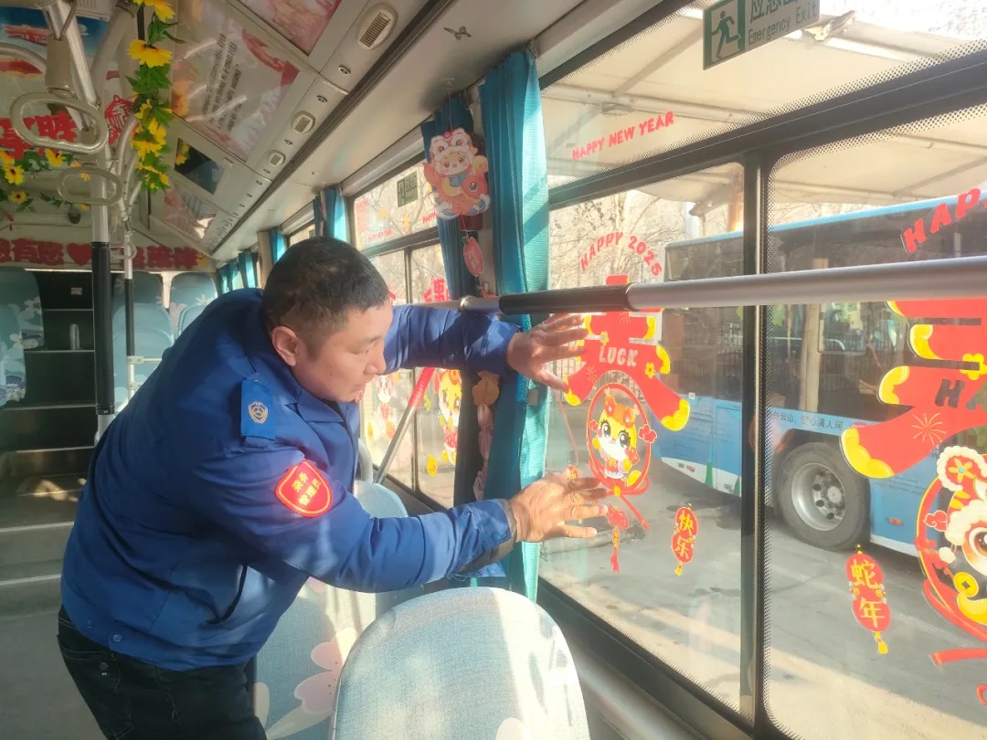 據(jù)了解,元旦前夕,沈陽客運集團按照全市“我是雷鋒”——沈陽市窗口行業(yè)文明誠信服務(wù)寵客(qiě)行動工作安排,落實全市“雙節(jié)”節(jié)日氛圍布置工作要求,積極開展“布置車廂,扮靚沈陽”行動,各車隊利用行車間歇和休息時間裝扮車輛,懸掛新年拉花、紅燈籠,張貼新年窗花及融入“蛇年”元素的貼紙等。目前,已有1188臺途經(jīng)主要街路、景區(qū)、商業(yè)街區(qū)的公交車輛完成了裝飾,車內(nèi)年味十足,客運集團計劃在春節(jié)之前完成全部運營車輛的裝飾布置工作。