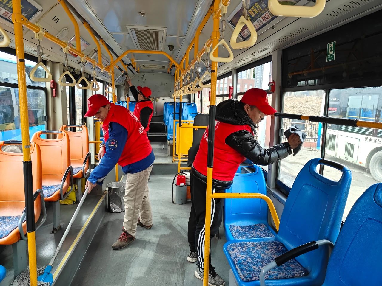 早春的寒風依舊冷冽,活動中,志愿者們不畏寒冷,身穿帶有志愿服務標識的紅色馬甲,手拿清潔工具,對公交車輛、場站、候車廊等場所進行清掃,為乘客提供干凈舒適的出行環境。