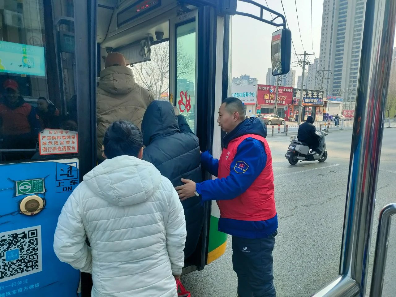 身披紅色綬帶的志愿者們熱情滿滿,為乘客提供咨詢引導服務,耐心解答各類出行疑問,幫助公交站點進行環境升級。
