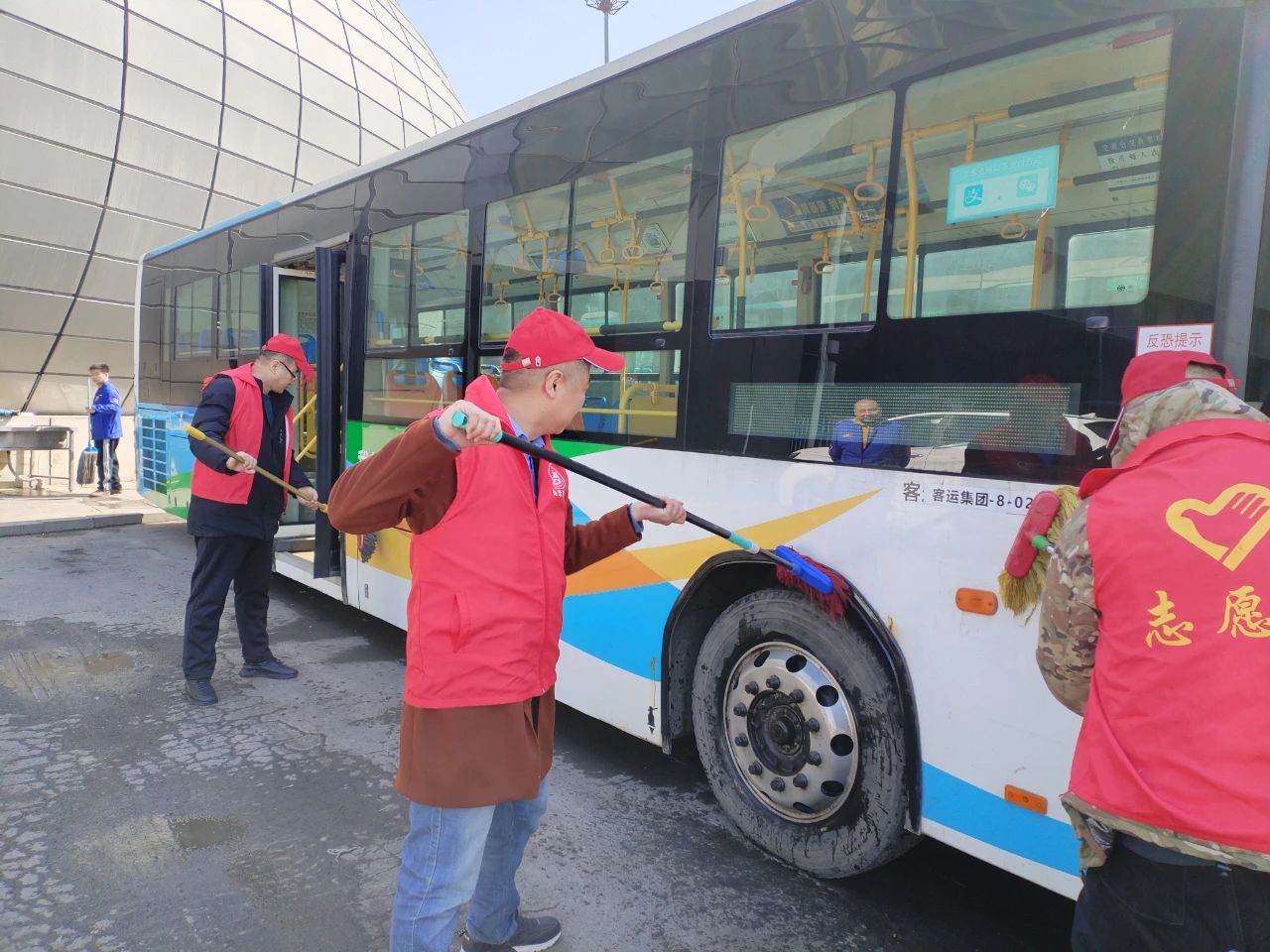活動當天,各車隊管理人員和駕駛員早早來到車隊,分成幾個小組,分別對場區、候車亭以及公交車廂進行了全面清潔。志愿者們手持掃帚、抹布、消毒液等工具,認真清理場區內的垃圾、雜物,擦拭候車亭的座椅和宣傳欄,并對公交車廂內的座椅、扶手、車窗等部位進行了細致消毒和清潔。