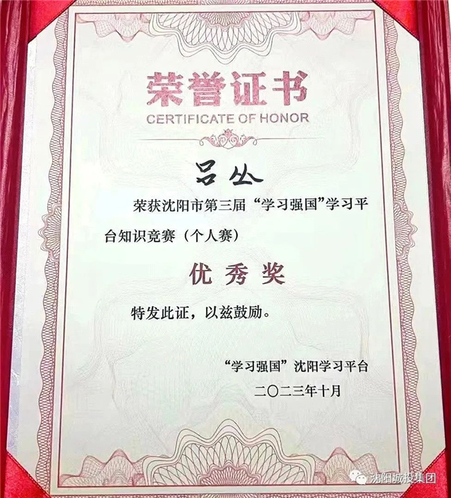 在剛剛結束的沈陽市第三屆“學習強國”學習平臺知識競賽(個人賽)中,代表市國資系統參賽的沈陽客運集團呂叢同志,獲得個人賽優...
